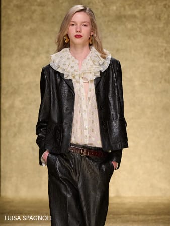Today, luxury fashion houses continue to reinvent bohemian aesthetics. Chemena Kamali’s Chloé Fall 2025 collection revived boho glamour with sheer chiffon dresses, oversized coats, and layered accessories. Alessandro Michele’s Valentino seamlessly blends intricate embroidery, relaxed tailoring, and free-flowing silhouettes. Luisa Spagnoli’s Fall 2025 collection also embraces boho elements, reflecting effortless yet elegant design.